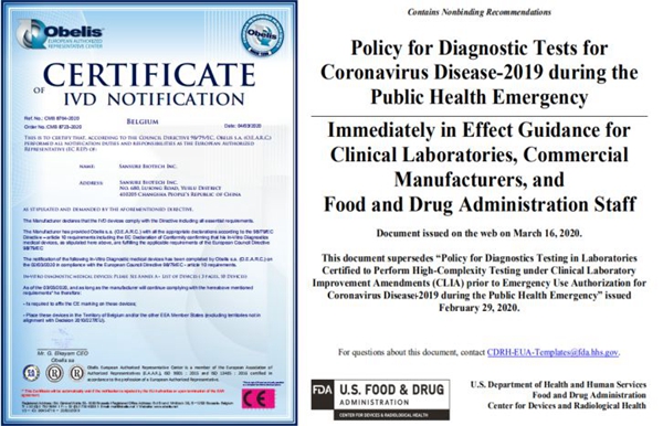金年会生物作为抗击疫情的一份重要力量,3月3日新型冠状病毒核酸检测试剂已获欧盟CE认证。此外,公司已经启动美国FDA EUA(紧急使用授权)申请,且Pre-EUA已受理,根据美国FDA 3月16日最新发布的新冠肺炎相关检测政策指南,金年会生物新型冠状病毒核酸检测试剂盒可在美国供临床使用,服务当地疫情防控。